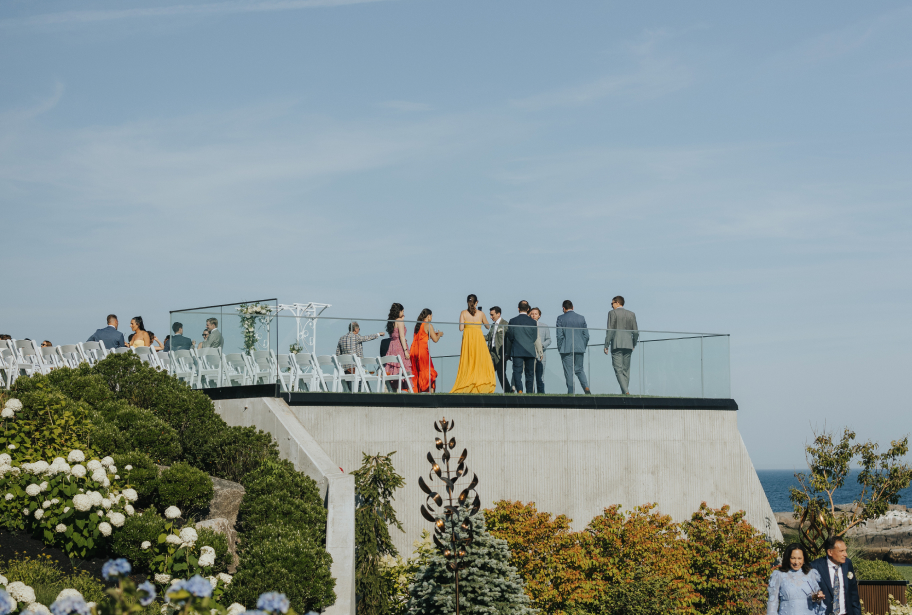 The infinity lawn is Maine's most coveted wedding ceremony venue. For Destination Weddings, ceremonies of up to 150 people. For ceremony-only weddings, up to 50 guests (Mondays to Thursdays) or 75 guests (Sundays). For elopements, up to 4 guests.